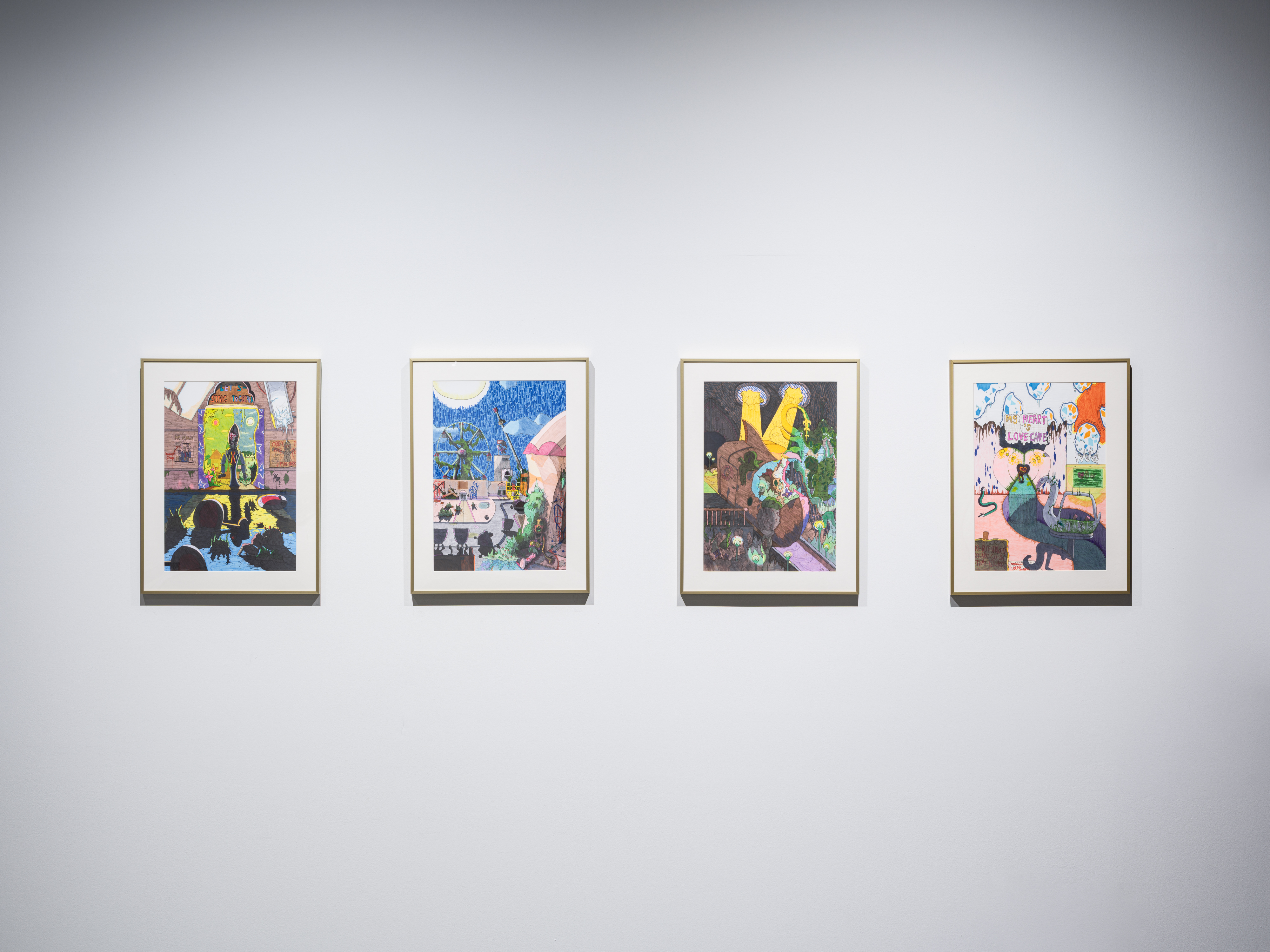 데이비드 오퐁,〈10가지 사실〉, 2022, 종이에 아크릴릭, 4 5.7×60.9 cm